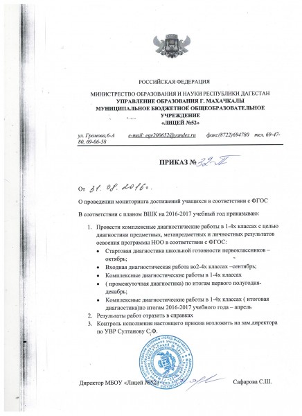 Приказ о проведении мониторинга достижений учащихся в соответстфии с ФГОС.jpg